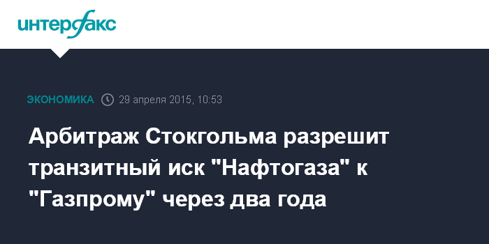 В октябре 2014 года "Нафтогаз" потребовал в Стокгольмском арбитраже признать, что его права и обязанности "Нафтогаза" по транзитному контракту с "Газпромом" подлежат передаче "Укртрансгазу". Также украинский госхолдинг требует привести контракт в соответствие европейскому законодательству (третьему энергопакету Евросоюза, принятому в 2009 году) и внутреннему украинскому законодательству.