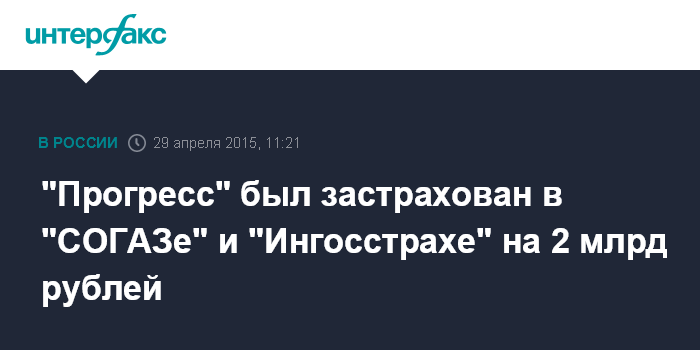 "Прогресс" был застрахован в "СОГАЗе" и "Ингосстрахе" на 2 млрд рублей