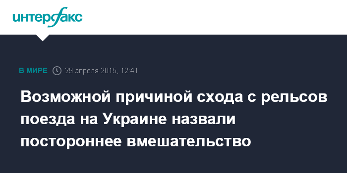 Возможной причиной схода с рельсов поезда на Украине назвали постороннее вмешательство