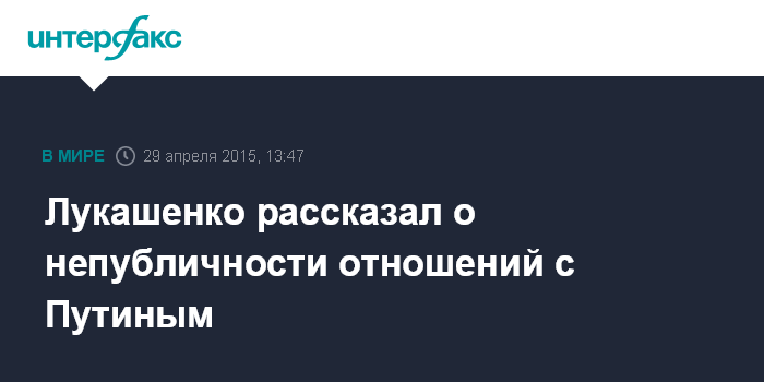 "Мы договорились с президентом России о непубличности наших отношений, и мы жестко придерживаемся этого курса. Если у него есть замечания, то он как мужик мне об этом говорит. Как мужик - знаете, как это бывает. И я ему так же говорю", - сказал Лукашенко.