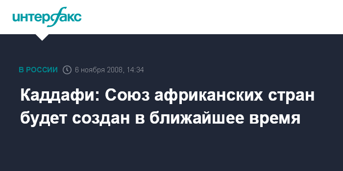 Москва. 6 ноября. INTERFAX.RU - Ливийский лидер Муамар Каддафи считает, что создание единого союза африканских стран находится на финальном этапе.