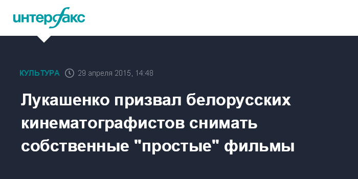 Москва. 29 апреля. INTERFAX.RU - Президент Белоруссии Александр Лукашенко заявил, что в стране нужно снимать свои "простые" фильмы.
