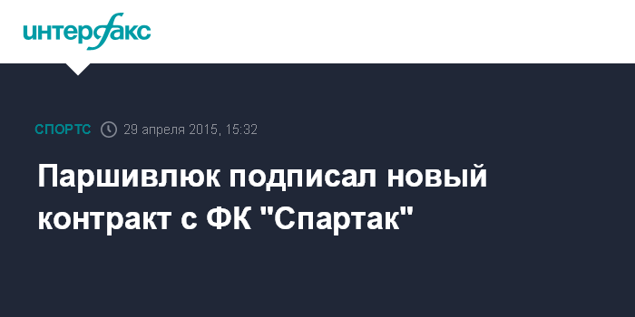Москва. 29 апреля. INTERFAX.RU - Защитник "Спартака" Сергей Паршивлюк в среду подписал новый долгосрочный контракт с клубом, сообщает пресс-служба "Спартака".