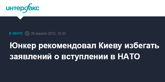 Москва. 29 апреля. INTERFAX.RU - Председатель Еврокомиссии Жан-Клод Юнкер во время визита в Киев дал совет украинскому руководству избегать заявлений о стремлении вступить в НАТО, чтобы не нагнетать напряженность, пишет в среду газета The Wall Street Journal.