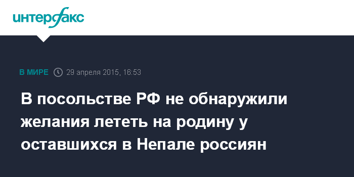 Москва. 29 апреля. INTERFAX.RU - Число россиян, желающих эвакуироваться из Непала, не превышает 20 человек, но и они не проявляют большого стремления срочно покинуть страну, заявил пресс-атташе посольства РФ в Непале Азрет Боташев.