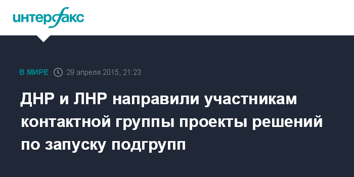 ДНР и ЛНР направили участникам контактной группы проекты решений по запуску подгрупп