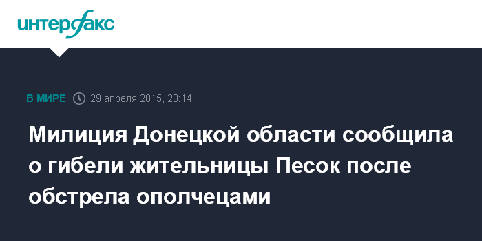 Милиция Донецкой области сообщила о гибели жительницы Песок после обстрела ополчецами