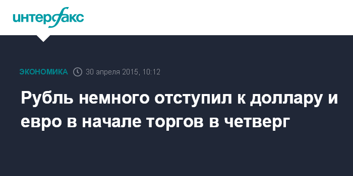 Москва. 30 апреля. INTERFAX.RU - Рубль чуть снизился к доллару и евро в начале торговой сессии четверга на Московской бирже, отыгрывая нисходящее движение нефти, рынок ждет решений ЦБ РФ.