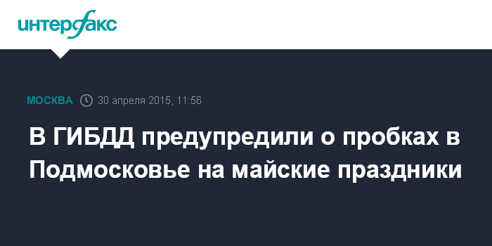 Москва. 30 апреля. INTERFAX.RU - Подмосковная Госавтоинспекция прогнозирует проблемы на дорогах региона в майские праздники в связи с массовым выездом москвичей за пределы столицы, сложности начинаются уже в четверг, сообщили "Интерфаксу" в пресс-службе Управления ГИБДД Московской области.