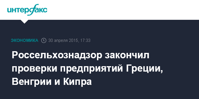Россельхознадзор закончил проверки предприятий Греции, Венгрии и Кипра