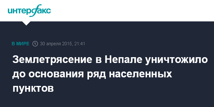 Москва. 30 апреля. INTERFAX.RU – Серия мощных землетрясений, произошедшая с субботы в Непале, разрушила почти до основания некоторые населенные пункты у эпицентра, говорится в четверг в заявлении Международной федерации обществ Красного Креста и Красного Полумесяца (МФОКК и КП).