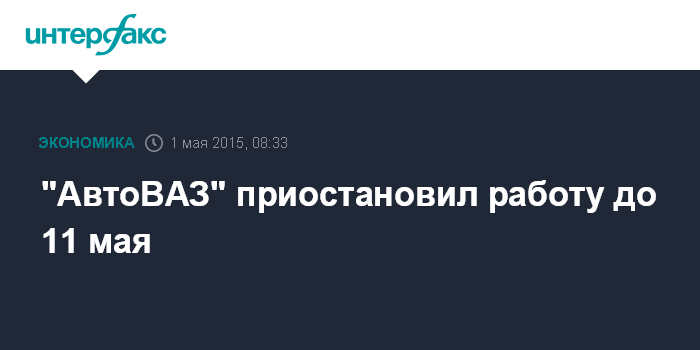 Москва. 1 мая. INTERFAX.RU - ОАО "АвтоВАЗ" в связи с майскими праздниками и дополнительными днями каникул приостанавливает производство автомобилей с 1 по 11 мая, сообщили "Интерфаксу" в пресс-службе компании.