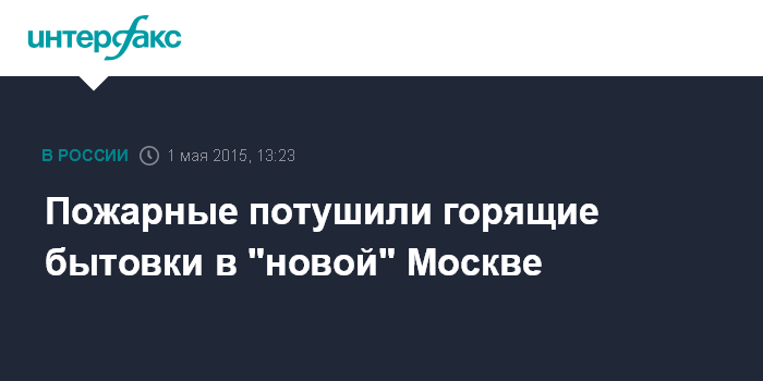 Москва. 1 мая. INTERFAX.RU - Возгорание бытовок в районе деревни Десна в "новой" Москве ликвидировано, сообщили "Интерфаксу" в пятницу в пресс-службе столичного ГУ МЧС России. "В 13:10 пожар ликвидирован", - сказал сотрудник пресс-службы.