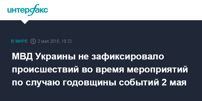 МВД Украины не зафиксировало происшествий во время мероприятий по случаю годовщины событий 2 мая