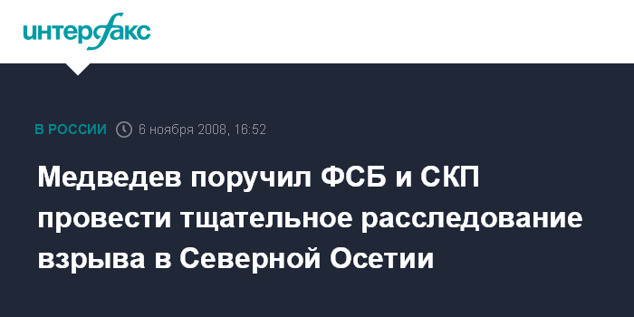 Медведев поручил ФСБ и СКП провести тщательное расследование взрыва в Северной Осетии