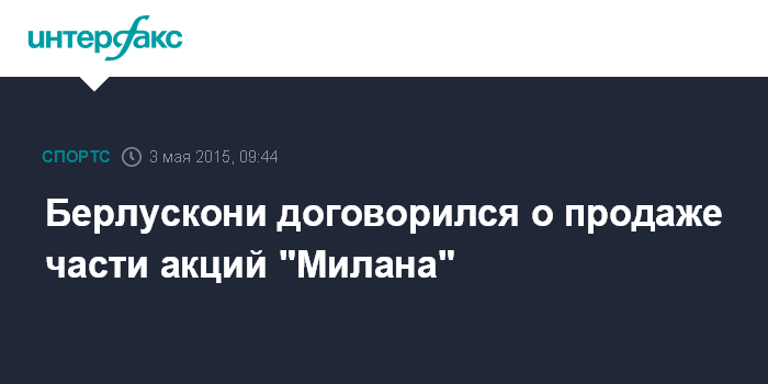 Москва. 3 мая. INTERFAX.RU - Бывший премьер-министр Италии Сильвио Берлускони начал переговоры о продаже части акций футбольного клуба "Милан", сообщает Bloomberg. Контрольный пакет останется в руках Берлускони и его компании Fininvest SpA, продать акции команды он намерен группе тайских инвесторов во главе с Би Тичаболом.