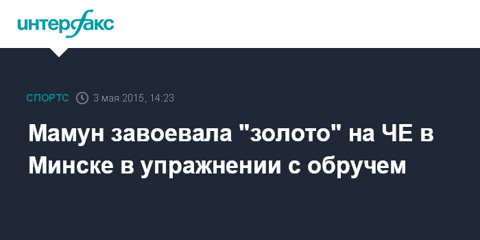 Москва. 3 мая. INTERFAX.RU - Россиянка Маргарита Мамун победила в упражнении с обручем на чемпионате Европы в Минске, набрав 19,000 балла.