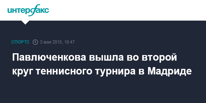 Москва. 3 мая. INTERFAX.RU - Россиянка Анастасия Павлюченкова пробилась во второй круг теннисного турнира в Мадриде, победив китаянку Пэн Шуай - 6:1, 6:2.