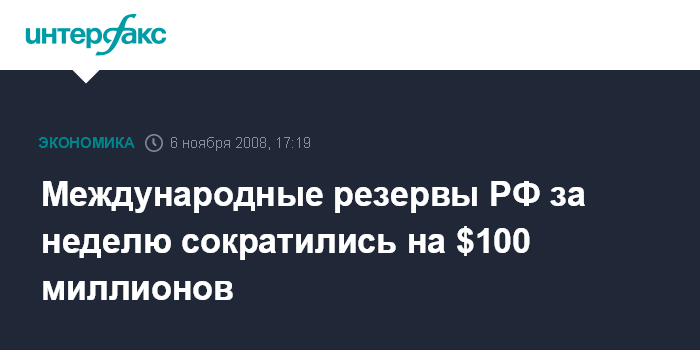 Международные резервы РФ за неделю сократились на $100 миллионов