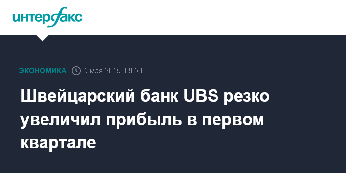 Москва. 5 мая. INTERFAX.RU – Крупнейший банк Швейцарии UBS, увеличил чистую прибыль в первом квартале 2015 года на 88%, в частности, благодаря хорошим результатам инвестиционного подразделения, а также подразделения в сфере управления активами состоятельных клиентов.
