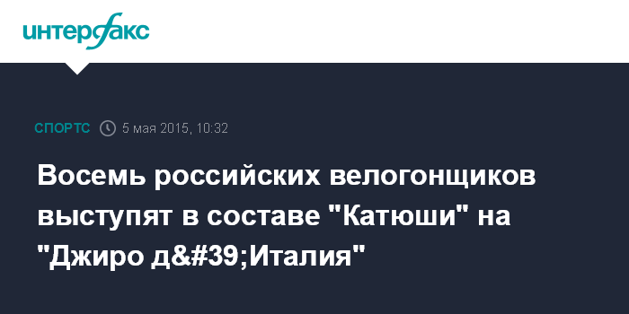 Москва. 5 мая. INTERFAX.RU - Команда Мирового Тура "Катюша" объявила состав на веломногодневку "Джиро д'Италия", которая пройдет в 98-й раз.