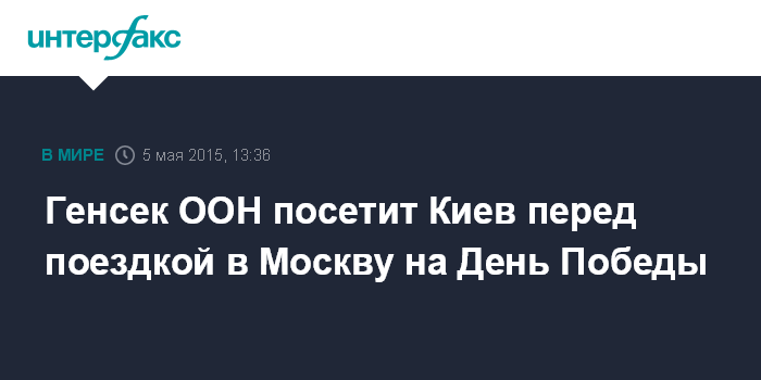 "Генеральный секретарь ООН побывает также в Киеве (Украина), где он встретится с президентом Петром Порошенко и другими высокопоставленными лицами", - заявил пресс-секретарь ООН Стефан Дюжаррик. Как стало известно "Интерфаксу", в Киеве Пан Ги Мун будет 8 мая.