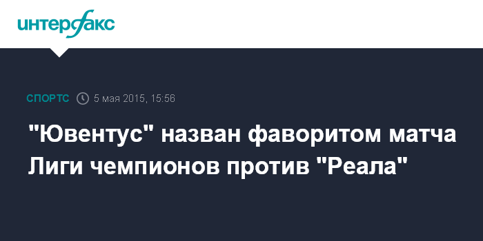 Москва. 5 мая. INTERFAX.RU - Туринский ФК "Ювентус" является фаворитом первого полуфинального матча Лиги чемпионов УЕФА против мадридского "Реала", свидетельствуют котировки британской букмекерской конторы William Hill.