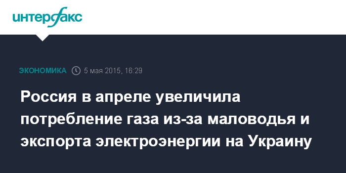Россия в апреле увеличила потребление газа из-за маловодья и экспорта электроэнергии на Украину
