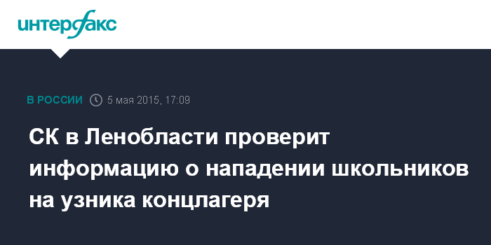 Москва. 5 мая. INTERFAX.RU - Следователи в Ленинградской области начали проверку после публикаций в СМИ о несовершеннолетних, которые якобы забросали камнями 77-летнего пенсионера, бывшего узника нацистского концлагеря в годы Великой Отечественной войны.