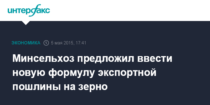 Минсельхоз предложил ввести новую формулу экспортной пошлины на зерно