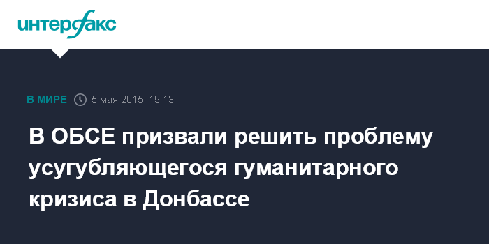 В ОБСЕ призвали решить проблему усугубляющегося гуманитарного кризиса в Донбассе