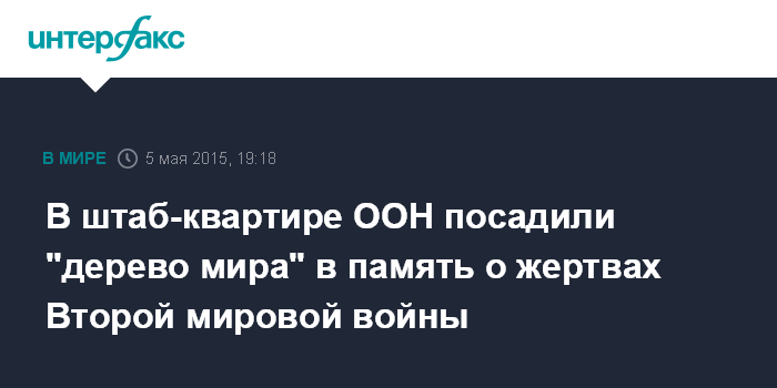 Москва. 5 мая. INTERFAX.RU - На территории штаб-квартиры ООН в Нью-Йорке посадили "дерево мира" по случаю 70-летия окончания Второй мировой войны, передает во вторник агентство EFE.