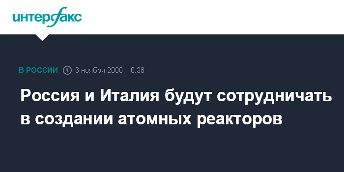 Россия и Италия будут сотрудничать в создании атомных реакторов
