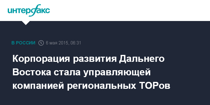Корпорация развития Дальнего Востока стала управляющей компанией региональных ТОРов
