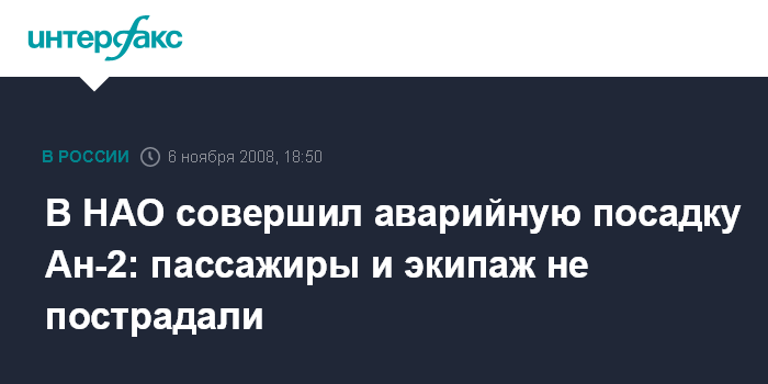 Москва. 6 ноября. INTERFAX.RU - В Hенецком автономном округе в районе поселка Верхняя Пеша в четверг днем совершил вынужденную аварийную посадку самолет Ан-2, сообщает пресс-служба Северо-Западного следственного управления на транспорте.