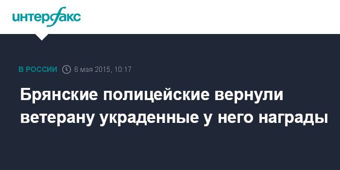 Москва. 6 мая. INTERFAX.RU - Брянские полицейские задержали двух жителей города Новозыбков, которые украли у ветерана Великой Отечественной войны наградные медали, сообщает пресс-служба регионального УМВД в среду.