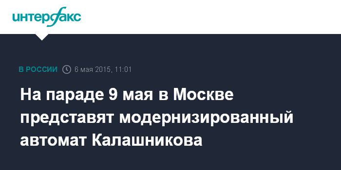 Москва. 6 мая. INTERFAX.RU - На параде 9 мая в Москве будет представлен модернизированный автомат Калашникова, сообщает концерн "Калашников" (Ижевск).