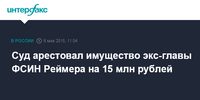 Москва. 6 мая. INTERFAX.RU - Пресненский суд Москвы санкционировал арест имущества и счетов на сумму более 15 млн рублей, принадлежащих экс-главе ФСИН Александру Реймеру, который обвиняется по делу о мошенничестве при закупке электронных браслетов.