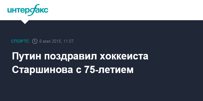 Москва. 6 мая. INTERFAX.RU - Президент РФ Владимир Путин поздравил почетного президента хоккейного клуба "Спартак", двукратного олимпийского чемпиона по хоккею Вячеслава Старшинова с 75-летием.