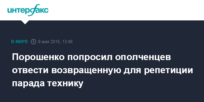Москва. 6 мая. INTERFAX.RU - Президент Украины Петр Порошенко считает принципиальным скорейший отвод тяжелой техники и артиллерии противника, которая, по версии Киева, сейчас возвращается в буферную зону в Донбассе.