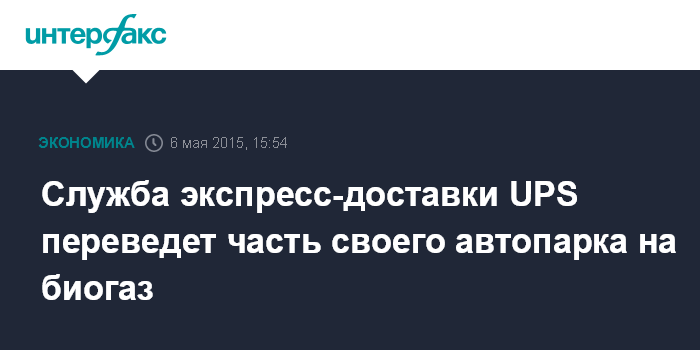 Москва. 6 мая. INTERFAX.RU – Крупнейшая в мире служба экспресс-доставки UPS Inc. намерена использовать биогаз в качестве топлива для части своего автопарка в рамках программы по сокращению загрязнения окружающей среды вредными выбросами, сообщает MarketWatch.