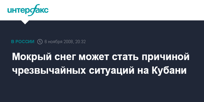 Москва. 6 ноября. INTERFAX.RU - В предгорных и горных районах Краснодарского края в ночь на пятницу возможно выпадение снега. В связи с этим, ГУ МЧС РФ по краю распространило предупреждение о возможном возникновении чрезвычайных ситуаций.