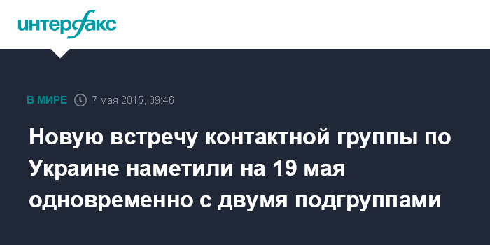 "Пока ориентировочной является дата 19 мая. В этот день запланировано проведение заседание двух подгрупп. Одновременно с этим в Минске может встретиться и Контактная группа", - сообщил "Интерфаксу" источник в группе по организации переговоров.