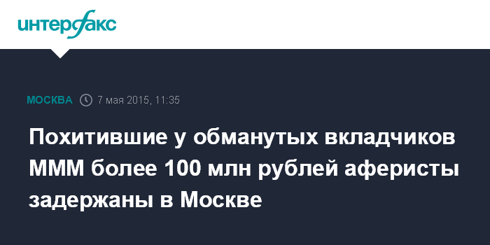 Похитившие у обманутых вкладчиков МММ более 100 млн рублей аферисты задержаны в Москве