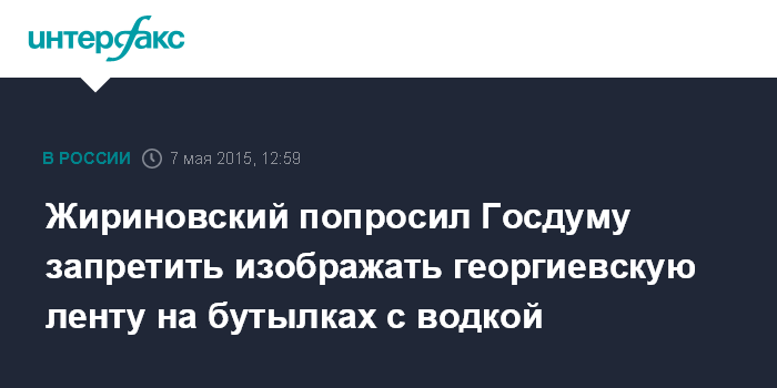 Жириновский попросил Госдуму запретить изображать георгиевскую ленту на бутылках с водкой