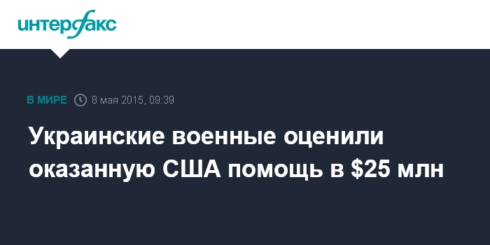 Москва. 8 мая. INTERFAX.RU - США уже оказали помощь Вооруженным силам Украины на $25 млн, сообщило министерство обороны Украины.