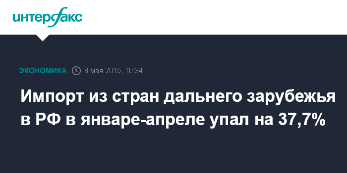 В апреле 2015 года относительно апреля 2014 года импорт из стран дальнего зарубежья уменьшился на 42,0%.