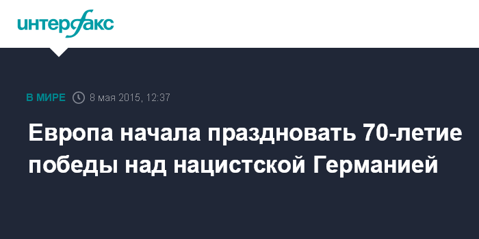 Москва. 8 мая. INTERFAX.RU - В ряде европейских стран в пятницу начинаются памятные мероприятия по случаю 70-летия окончания в Европе Второй мировой войны, сообщает "Би-би-си".