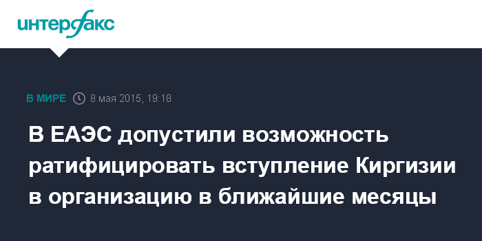 Москва. 8 мая. INTERFAX.RU - Глава коллегии Евразийской экономической комиссии Виктор Христенко рассчитывает, что документы о присоединении Киргизии к ЕАЭС будут ратифицированы в России еще в ближайшие месяцы.