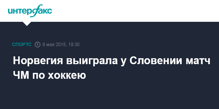 Москва. 8 мая. INTERFAX.RU - В матче пятого тура группового этапа чемпионата мира по хоккею сборная Норвегии одержала победу над национальной командой Словении.
